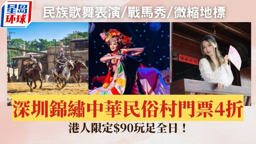位于深圳南山区的人气景点“锦绣中华民俗村”近日推出港人优惠,门票减价至4折,只需$90即可入场玩足园区内多个设施,包括中国微缩地标、民俗村寨,亦可欣赏民族歌舞表演、战马秀等精彩演出,绝对是深圳好去处之一,即看优惠详情!