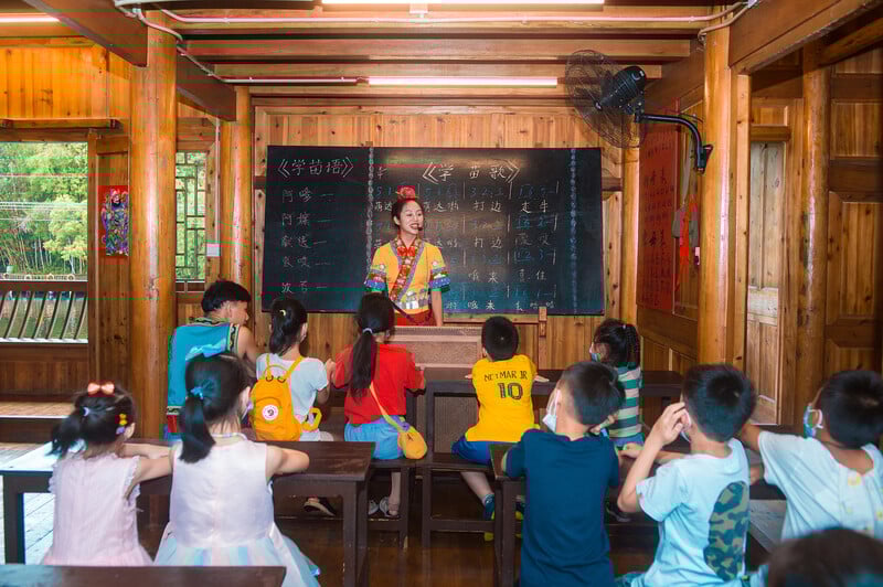 另外,中国民俗文化村设有28个民族特色村寨,当中最具特色的有苗族建筑“吊脚楼”,吊脚楼通常依山而建,会利用斜坡地势,运用木柱悬空撑起建筑物,大家亦可观赏到苗族特色“拦门酒”、“板凳舞”等传统习俗。