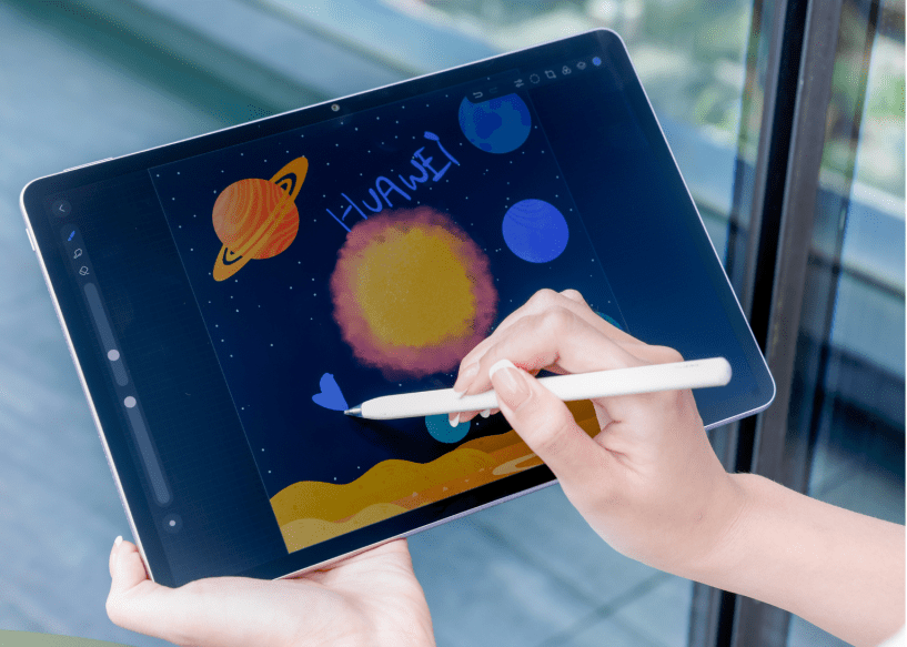 过去很多会用平板画画的用家,为追求如在纸张下笔的效果,特地在萤幕贴上类纸膜或画画膜,而HUAWEI MatePad 11.5”S所用的新一代PaperMatte柔光屏,直接带来纸张质感,以手触摸会发现萤幕表面有一层细緻纹理,配合买机时送赠的第3代M-Pencil,落笔能感受犹如真笔在纸张上摩擦的微微阻力,有别传统在光滑玻璃上滑动。