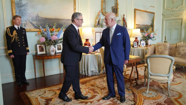 法新社和英国广播公司新闻网(BBC News)报导,英王查尔斯三世今天于白金汉宫(Buckingham Palace)接见斯塔默,正式任命他为新任英国首相。