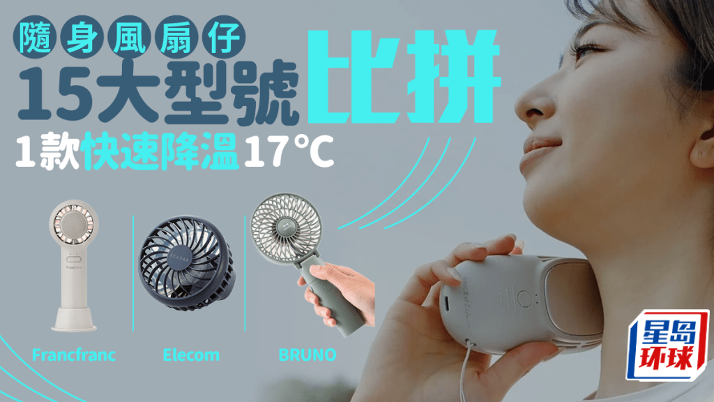 今时今日的小风扇设计五花八门,最常见有波板糖一样的手柄式,亦有像风筒的枪柄式,两者都要手持拿着,可免提解放双手的,则有挂颈式、坐枱式、夹枱式,甚至吊在胸口的手袋式,以及扣在腰间的腰挂式,想要手持定免提?自己决定。