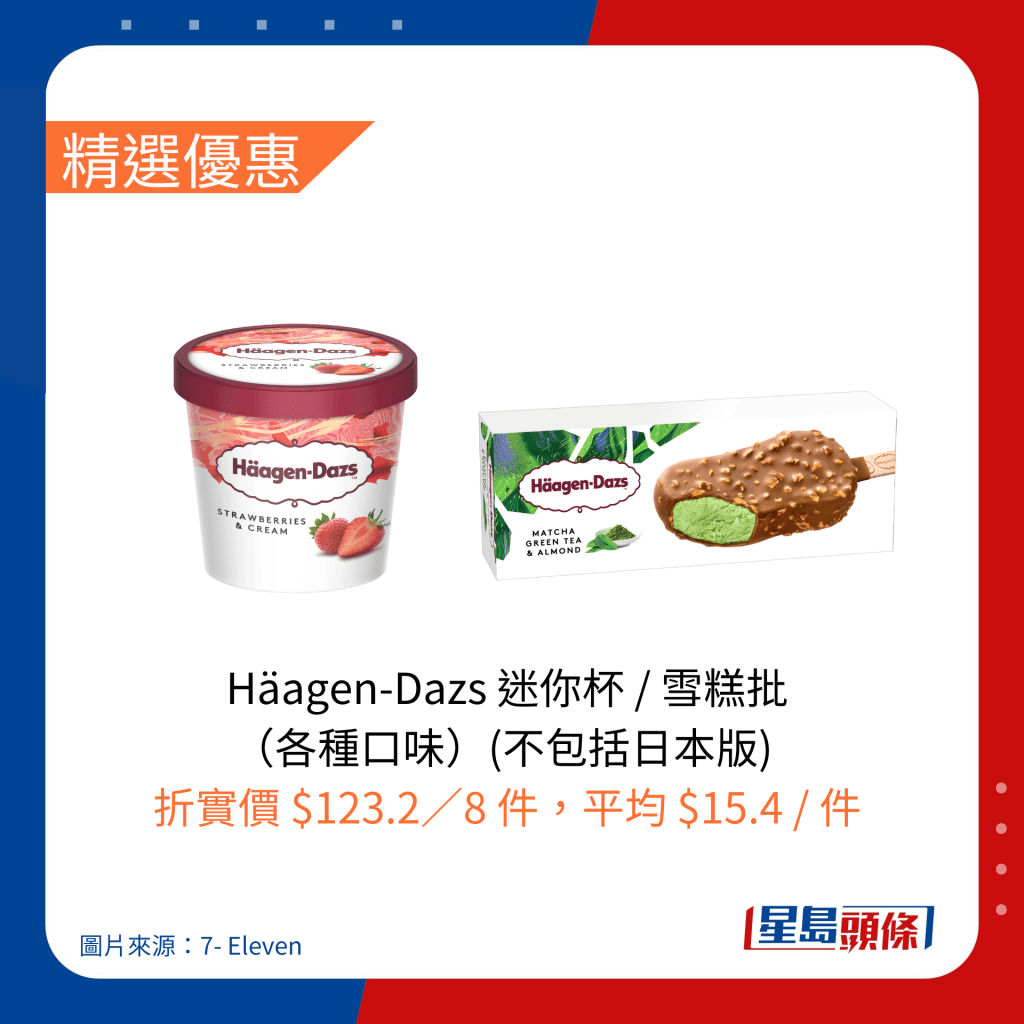 在7 月 11 日早上 7 时至晚上 11 时 59 分之间,只要在 7-Eleven 购物满 $100 或以上,即可享受 77 折优惠。这次优惠产品包罗万有,消暑必备的有 DREYER'S D-COLLECTION 脆皮雪糕批、雪糕杯、脆筒、Häagen-Dazs 雪糕批、迷你杯,还有三款来发记的榴莲蓉雪条。品客薯片系列、各款啤酒和烧酒等亦是必抢之选。另外亦有厕纸、金象米、洗衣珠等实用日常居家之选,通通都有折!