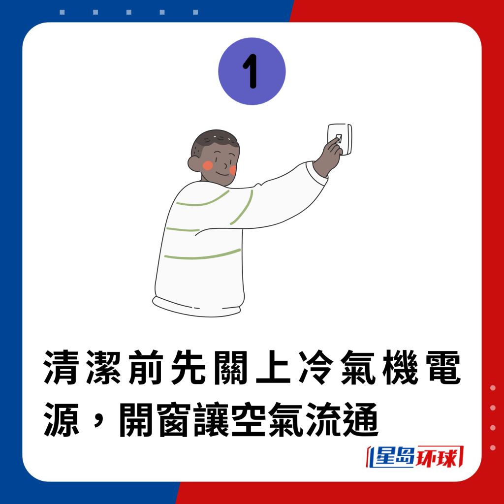 1. 清洁前先关上空调机电源,开窗让空气流通