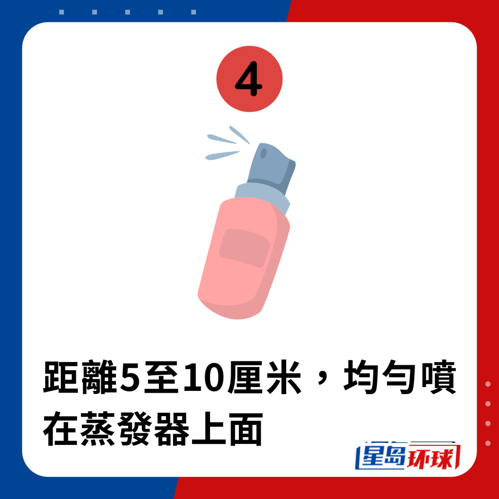 4. 距离5至10厘米,均匀喷在蒸发器上面
