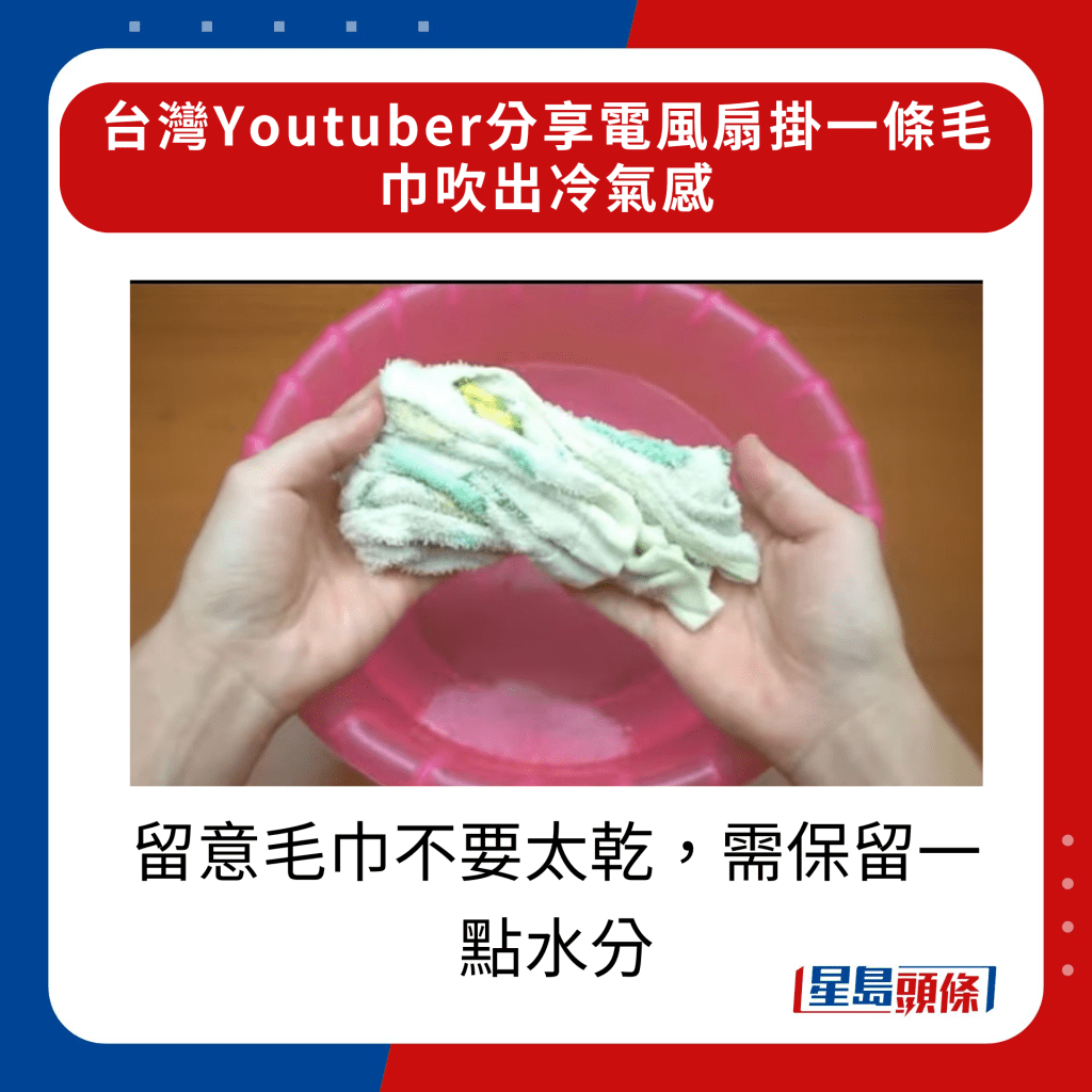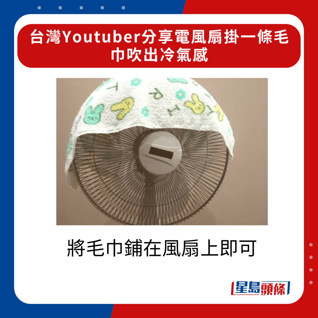 今年夏天特别热,为省冷气钱,很多人家里都会开风扇助降温。然而当气温高,有时风扇吹来的风只会越吹越热,没甚降温效果。早前有台湾YouTuber教路,用1条毛巾就可以令风扇吹出来的热风变得凉快,就算不开冷气也可以降低室内气温,非常舒服。惟有网民质疑,这个降温方法有2大潜在风险,吁大家勿乱试?