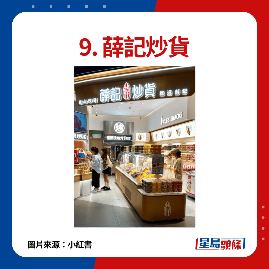 ▲9. 薛记炒货:出售多款坚果及果脯零食产品,如瓜子、花生、蚕豆、栗子、水果干等