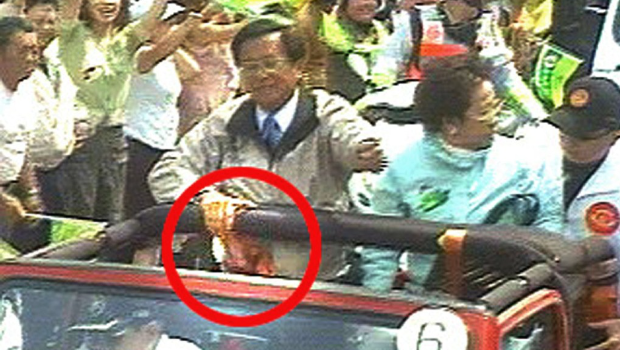即时让人想起台湾20年前的陈水扁枪击案。当年时任台湾民进党藉领导人陈水扁拜票争取连任,与副手吕秀莲在台南市汽车游行拉票期间遭到枪击,陈水扁腹部中枪,吕秀莲膝盖受伤。隔天如期举行的选举形势因2颗子弹逆转,原本支持度落后的陈吕二人,以3万多票的些微优势当选连任。