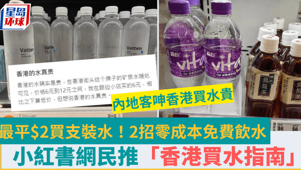 恢复通关后,内地和香港两地旅客来往愈见频繁,不过两地物价差异大,有内地旅客认为香港物价高、消费贵,更被香港便利店的支装水及饮料价钱吓怕,直言“喝不起”。有小红书网友因此决定推出“香港买水指南”,为旅客推介可以便宜价钱购买支装水或饮料的地方,最平$2就有交易,此外亦介绍2个零成本饮水方法,为旅客实现“喝水自由”!