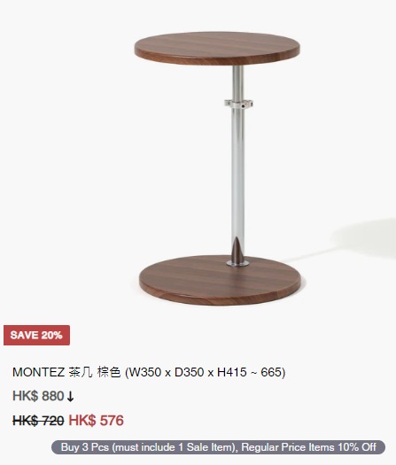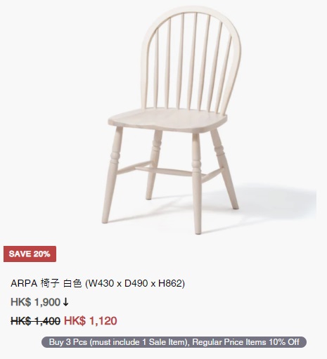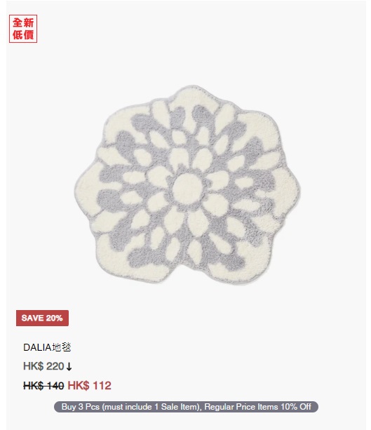 家具是一个温暖的家必备之物,部分Francfranc家具于感谢祭时劈价发售,迪士尼反派系列亦有减价,《斑点狗》反派库伊拉椅从原价$2,000激减至$1,000发售,足足有半价。甚具贵气的大理石3层收纳架8折以$344发售、两层咖啡桌减价至$1,200;充满夏日风情的休闲椅及吊床亦分别减至$1,170及$1,120。