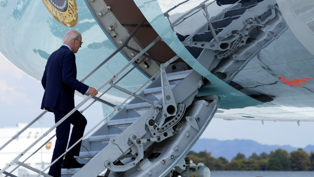 ▲拜登再度确诊新冠! 登机虚弱影像曝光。(图/美联)