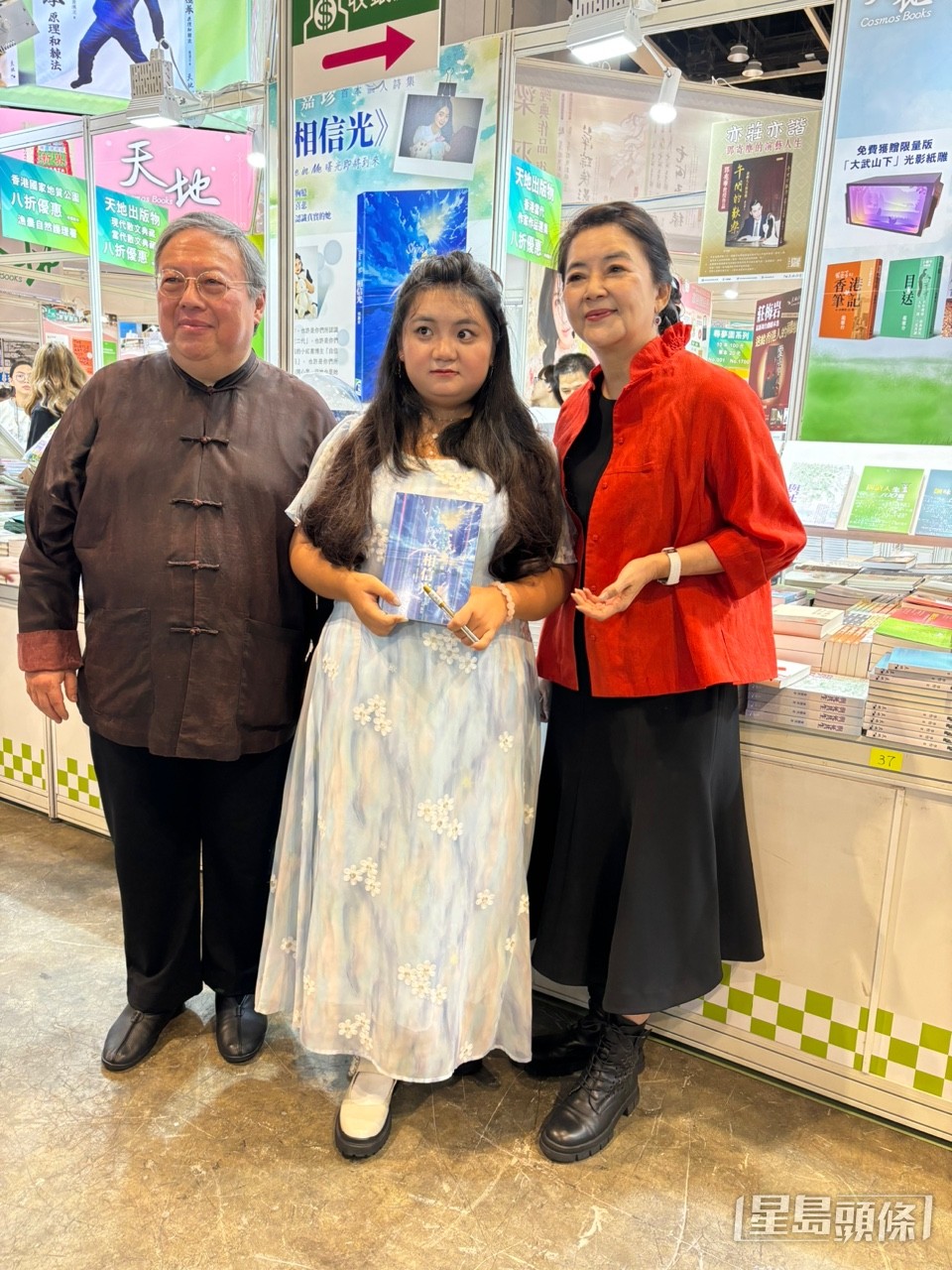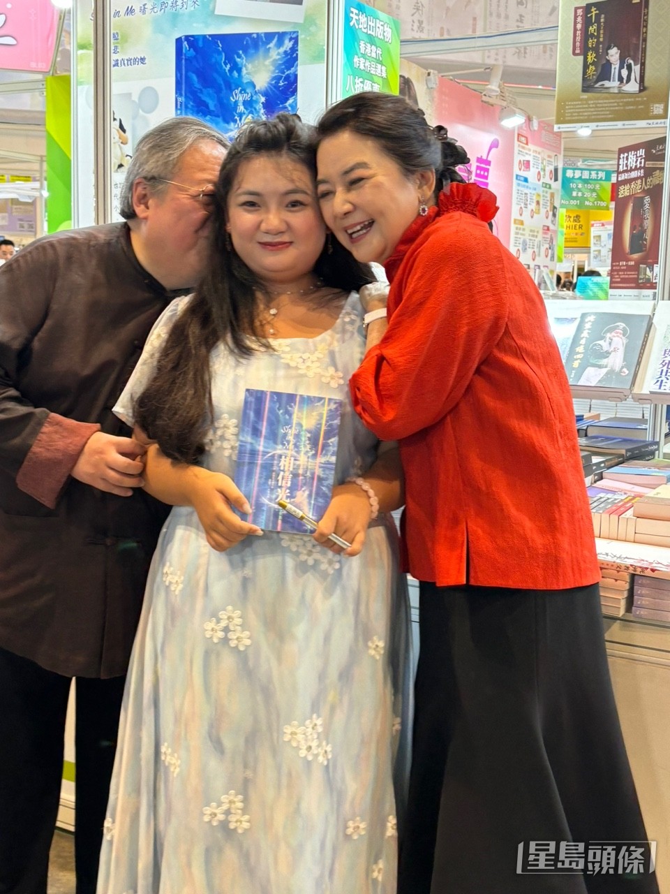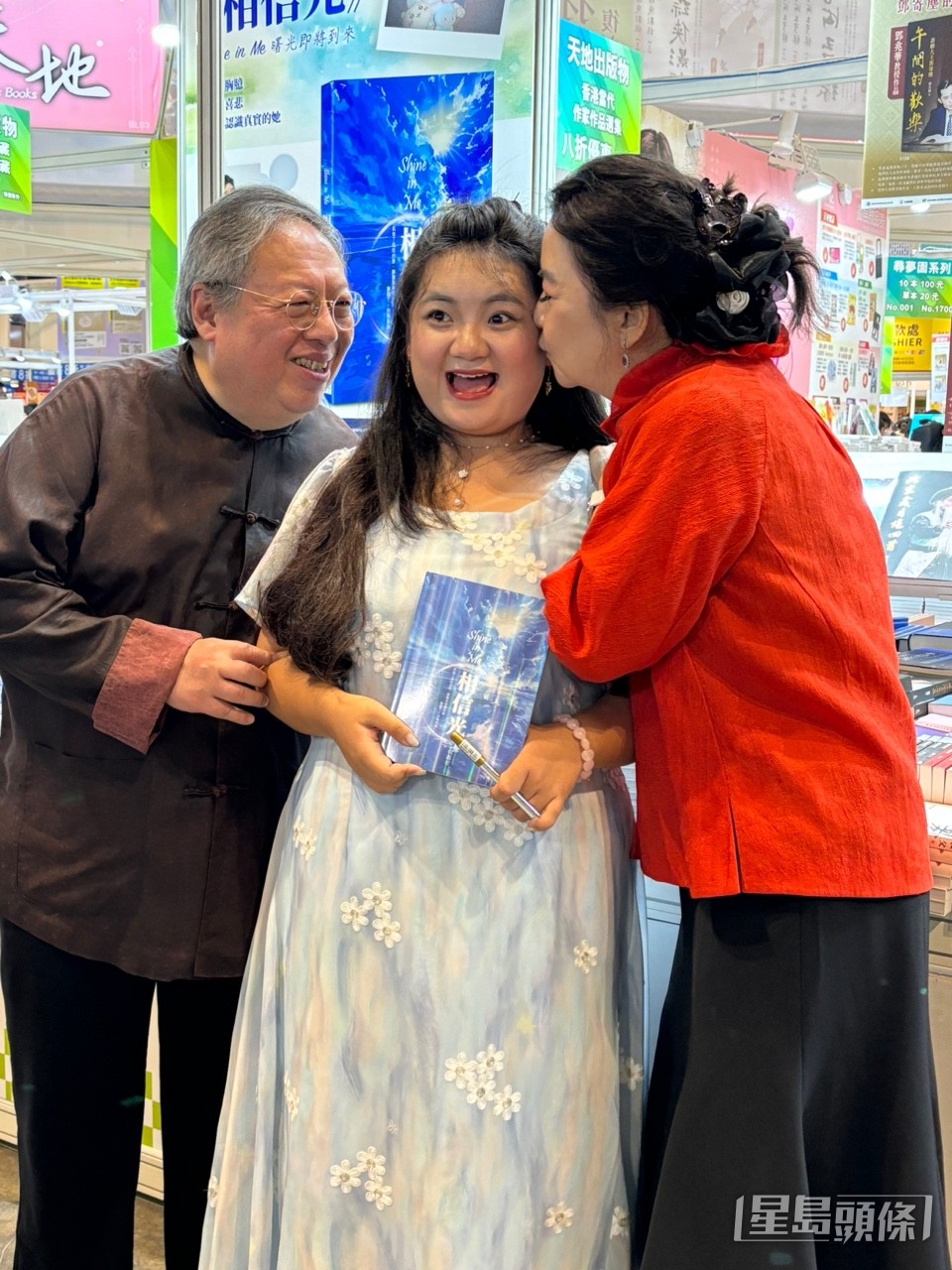 ▲何嘉珍今日(17日)到书展宣传新书,父母和嫲嫲都有来到支持,父母更吻贺她送祝福。