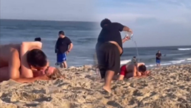 据《每日邮报》报道,近日一段影片在网上爆红,美国一对情侣在众目睽睽之下,旁若无人地躺在沙滩上热吻交缠,惹附近游客反感。其中一名身穿深蓝色T恤的少年忍无可忍,直接拿着一大瓶水上前浇向两人,试图制止他们的行为。