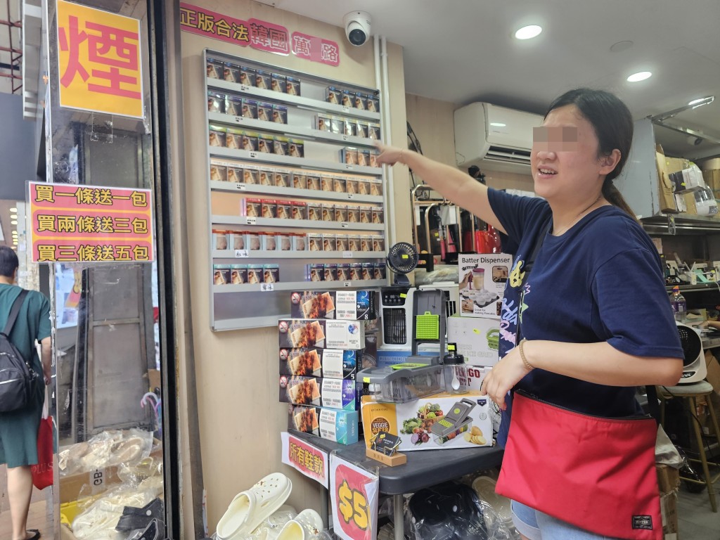 “白牌烟”代理以“阴阳价单”蒙骗商贩,荃湾沙咀道有杂货店近日在当眼位置摆放有关香烟,并张贴注明“正版合法韩国万X路”的虚假陈述告示,又展示“买一条送一包”、“买两条送三包”、“买三条送五包”的涉嫌违法推销烟草产品广告。