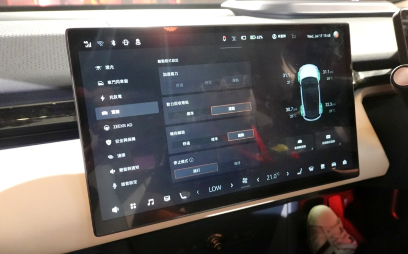 ▲极氪ZeekrX电动车高性能四驱版内置驱动程式设定,包含3种加速能力选择、2级动能回收及3种转向辅助模式。