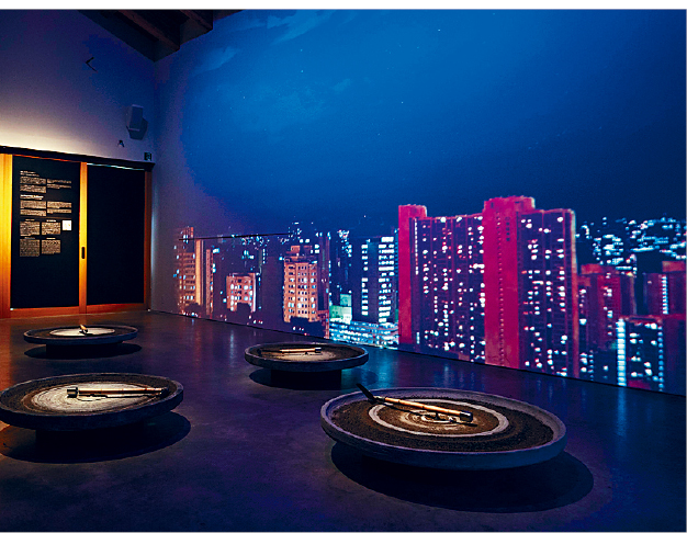 说到本届越后妻有大地艺术祭的作品中,最具亲切感的想必是位于津南町“香港部屋”的《一样不一样》。原来自2018年开始,康乐及文化事务署的艺术推广办事处便与大会合作建立“香港部屋”,本届的获选作品便是本地艺术家曾敏富及谭若兰的《一样不一样》,艺术家将从香港及津南町收集得来的废纸打碎制成手造纸及转化为山水风景,并透过在泥盘上转动的农具,以及投影与灯光效果,展现两地生活节奏的差异及时间与自然的联系。