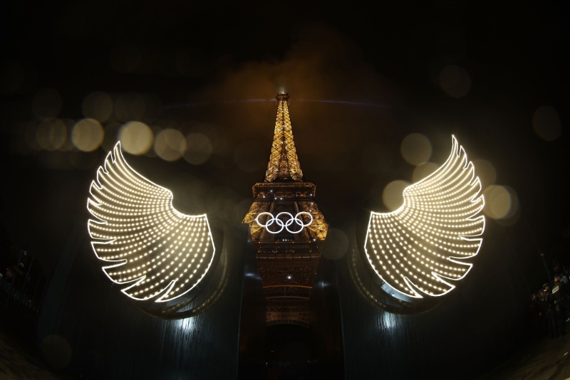 在艾菲尔铁塔令人惊叹的灯光秀之后,由法国田径传奇人物佩雷克(Marie-Jose Perec)和3届柔道冠军希内(Teddy Riner)点燃巴黎奥运圣火。