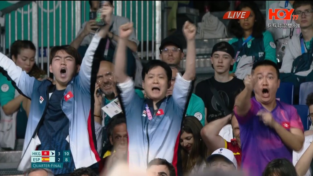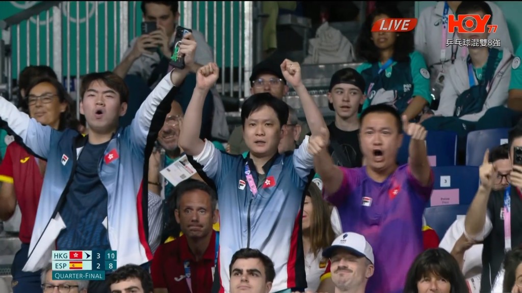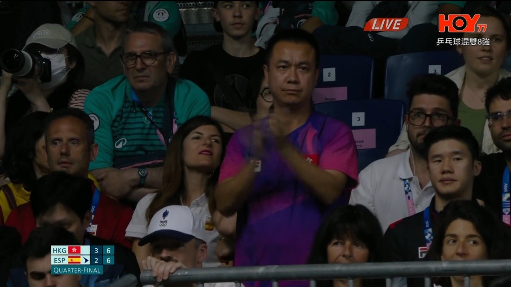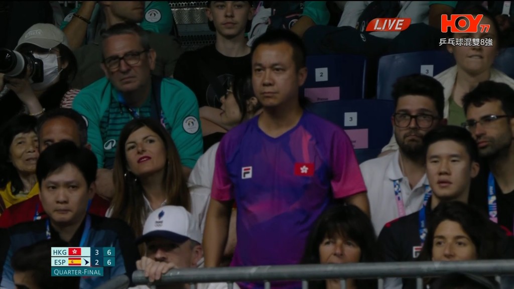巴黎奥运昨晚(28日)进行混双乒乓球赛事,港队组合黄镇廷/杜凯琹在混双8强战创下佳绩,成功击败西班牙组合的罗比列斯/肖瑶茜杀入4强,今晚(29日)10时将与北韩组合李郑息/金琴英争入决赛。在8强战上,黄杜配克服逆境波打入4强,赛事十分精彩,不过坐在观众席上的总教练李静,他的表情亦是大家的焦点!