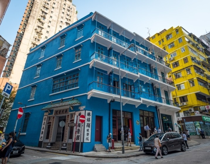 .抵达一级历史建筑“蓝屋建筑群”,这里曾是医院,现已改装成有艺术家的工作坊、咖啡厅和小酒馆,保留唐楼及独特的阳台设计建筑特色;