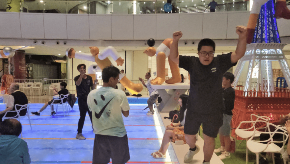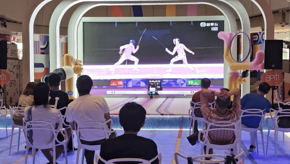 何诗蓓和张家朗的决赛项目均在周二凌晨三时之后,于观塘apm和奥运站奥海城商场依然灯火通明,各别有约20至30名市民透过大屏幕为两位港将打气,而且不时随着战况的节奏而不期然地喊出声来,当张家朗胜出夺金一刻,有市民更兴奋得手舞足蹈,全情投入该两场紧张赛事之中。