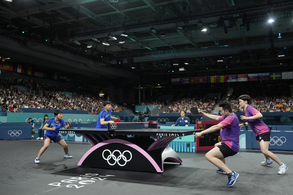 ▲黄镇廷、杜凯琹在8强恶斗朝鲜李郑息、金琴英。