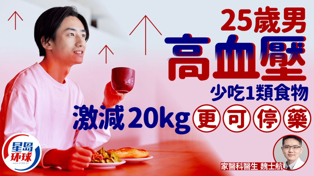 改善高血压,减盐不只最重要? 有医生分享病例指,一名25岁男子有高血压及肥胖问题,按照医生的指示服药并减少吃1类食物,5个月病情控制大有进展,不只大减50kg,更不用再服血压药。