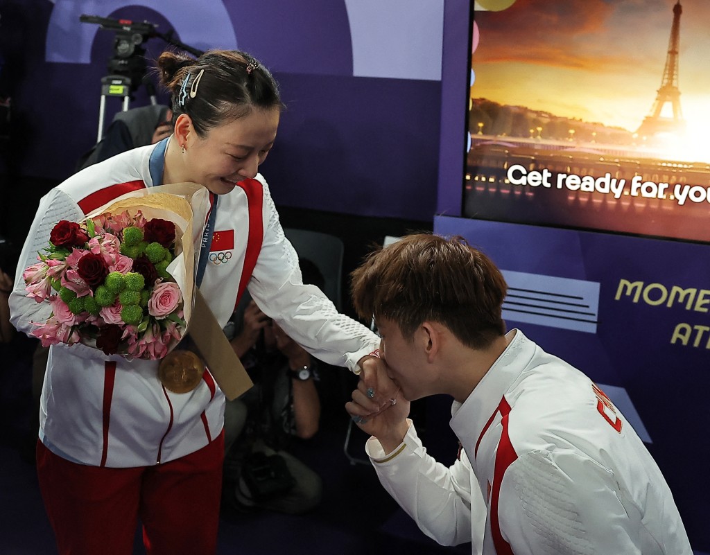 巴黎奥运混双羽毛球赛事,头号种子、国家队的郑思维/黄雅琼面对韩国的金元昊/郑娜银,前者以21:8、21:11轻取对手,终于拿到奥运金牌,弥补上届东京奥运决赛饮恨夺银的遗憾。 夺金之后,黄雅琼男友刘雨辰更是即场求婚,成就夺金之后的另一个难忘画面。