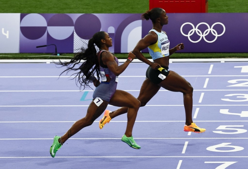 ▲圣卢西亚的艾菲(Julien Alfred)在女子100米跑起步顺利,最终以10秒72率先冲过终点,获得金牌。 路透社