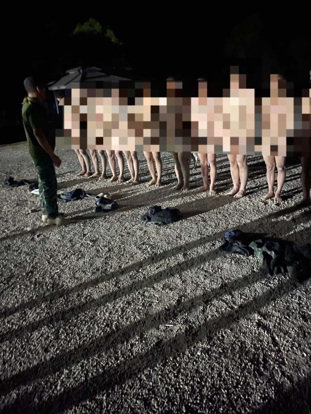 ▲约10名士兵被命令脱光衣物站着。(FB@Survive-สายไหมต้องรอด )