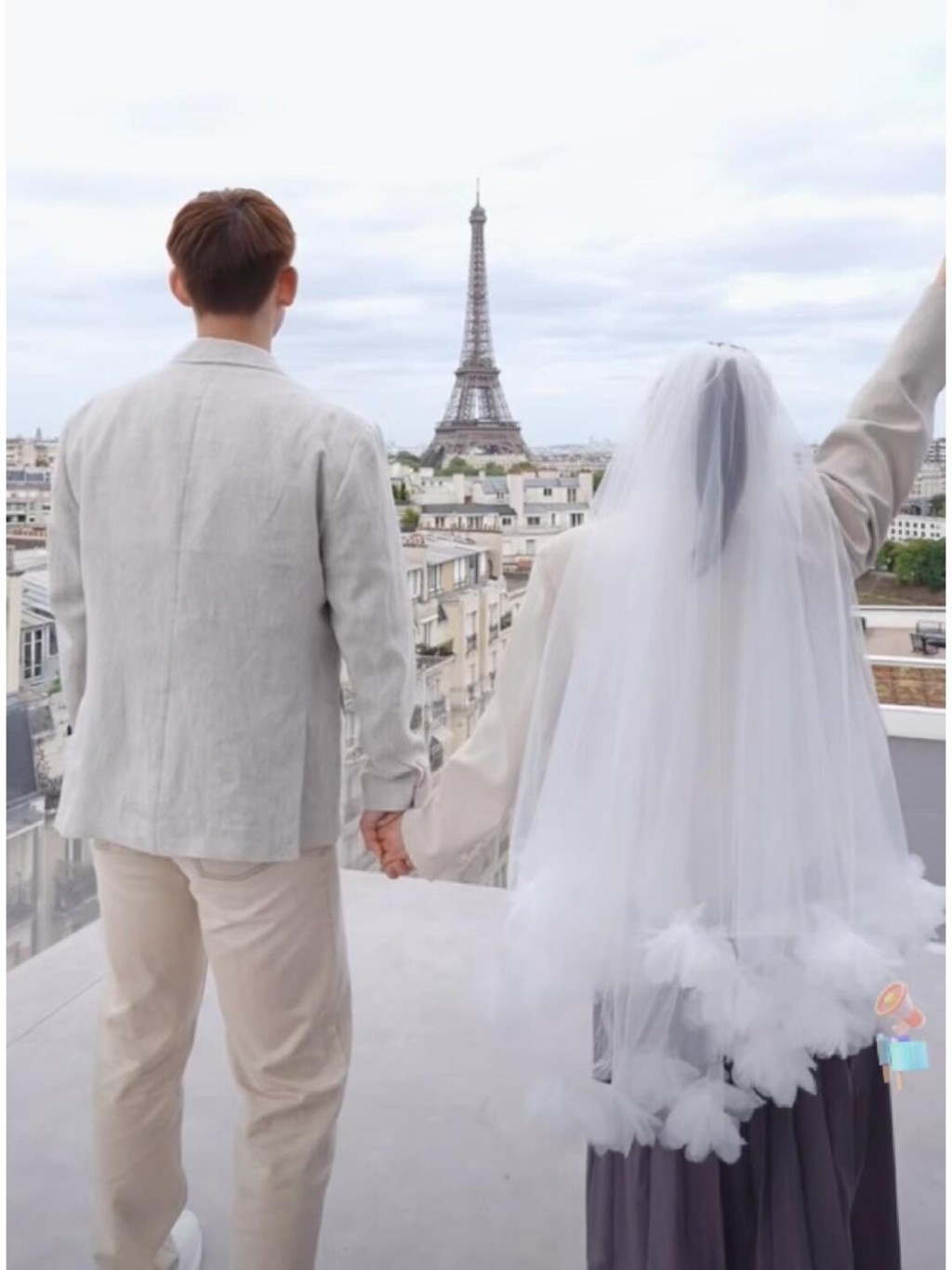 ▲刘雨辰和黄雅琼在巴黎影婚照!