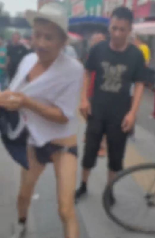 辽宁沈阳有大妈与一男长者发生争执,女方声称遭非礼,死拉男方衣衫不准对方离开,男长者为了离开,当街不断除衫脱裤,一度只剩三角裤,最终赤裸上身才能落荒而逃。