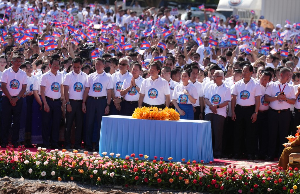 ▲柬埔寨首相及民众参加运河开工典礼。(中新社)