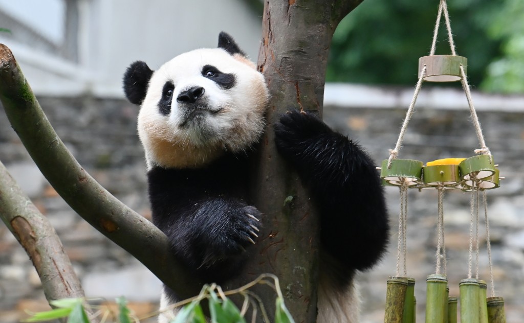 ▲和花(别名“花花”)被形容为“大熊猫界的顶流女明星”。(新华社)