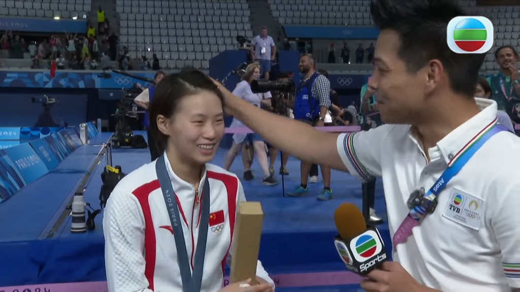 上届东京奥运因疫情延迟一年至2021年举行,当被问到跟4年前初出道的自己说甚么时,全红婵更搞笑指正:“4年前?不是3年前吗?为甚么是4年前?”对住大师兄也毫无惧色,非常搞笑。最后何冲叫她用广东话致谢,她即爽快答应:“大家好,多谢你哋,我系全红婵。”何冲访问陈芋汐时,问到连续两届输给同一人(全红婵),信心会否动摇,陈芋汐答得很得体:“我觉得其实没有,我还希望下次再来”,而同样叫她说广东话时,陈芋汐实时像舌头打结,一直说不出自己的名字,同样可爱。