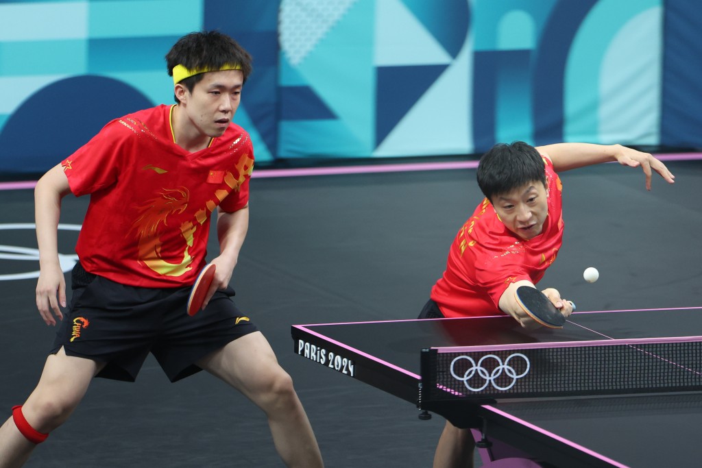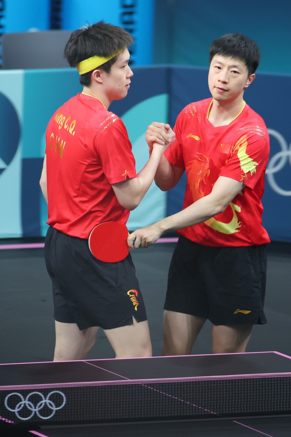 ▲马龙伙拍王楚钦打双打,两人合作十分出色。新华社