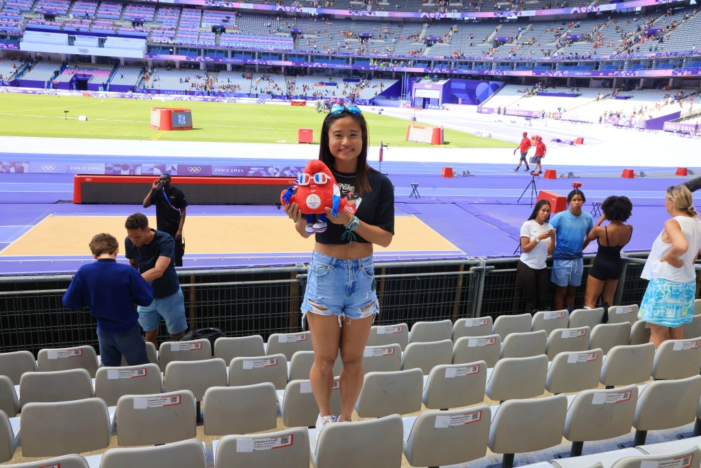 以“紫跑道”再度闻名的“法兰西体育场”,这天早上来了一位熟悉的面孔,她正是香港女子跳远代表俞雅欣(Tiffany ,带着“新欢”、巴奥吉祥物“弗里吉”到场观看女子跳远初赛,只差几位无缘巴奥的她坦言:“百感交杂,我会将‘弗里吉’带回香港,记住近半年冲奥的努力,带住这份决赛去冲4年后的洛杉矶奥运会。”自言追奥不是“发白日梦”的Tiffany下一步,是争取明年东京世锦赛席位。