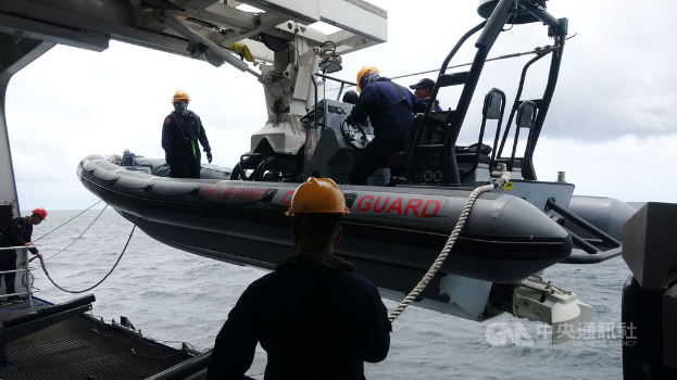 ▲菲律宾海岸防卫队(PCG)与越南海洋警察司令部(VCG)船舰9日在马尼拉湾口举行首次联合演习,图为菲国船舰准备放下小艇执行搜救任务。(中央社)