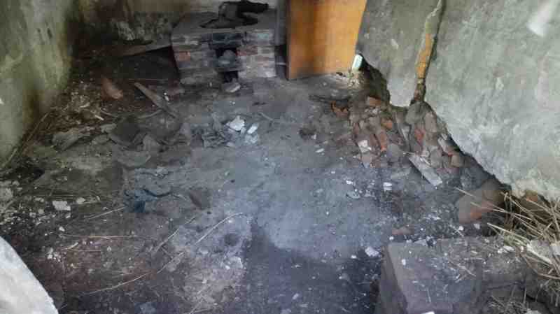 ▲凶宅的厨房,地面还保留着25年前被挖掘过的样子。