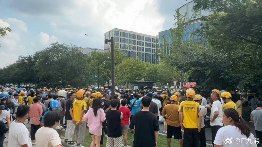 8月12日,杭州西溪世纪中心保安与骑手发生冲突一事引发关注,当天下午不少骑手聚集至西溪世纪中心保安室,网传骑手是为了要求保安道歉。当晚随即传出平台将封禁前往西溪世纪中心骑手账号的消息。网传微信聊天群组截图中,有人称“这次开着蓝牙的手机去西溪世纪中心的,明天全部封号处理。”