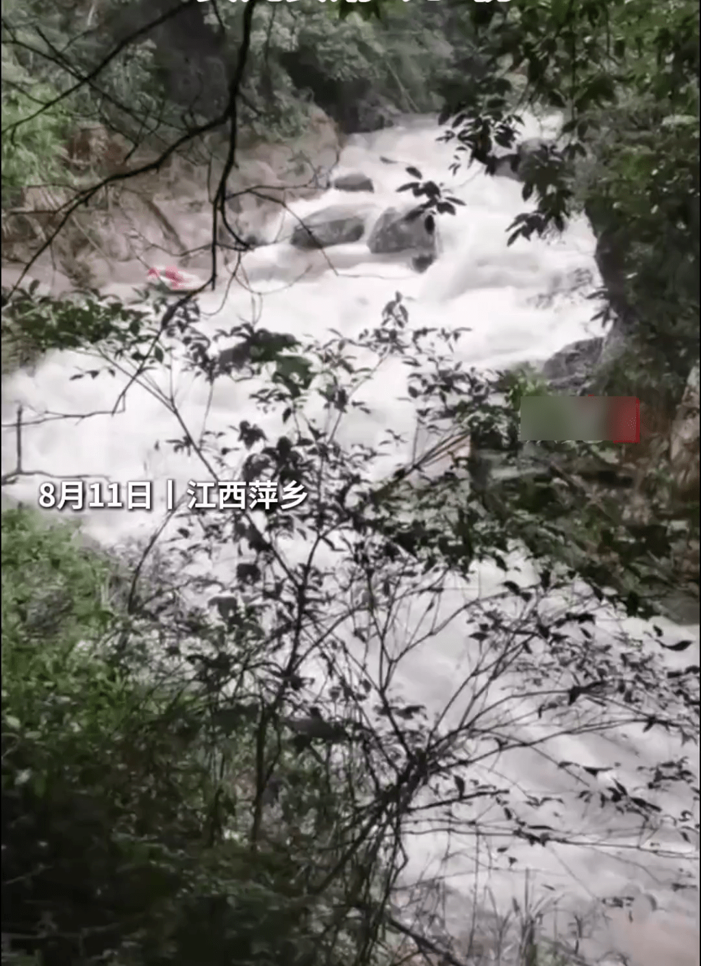 ▲江西武功山景区玩漂流时突遇水涨,夫妻1死1伤。