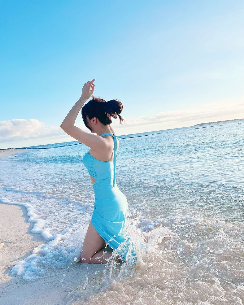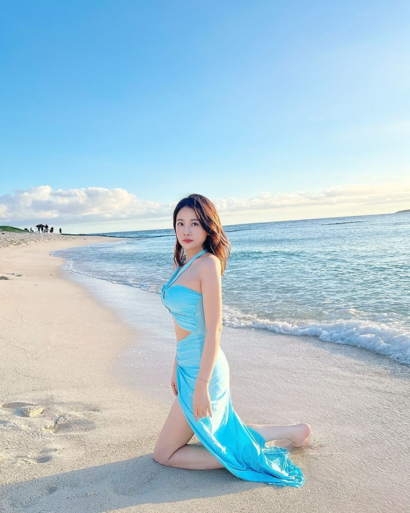 近日,温荞菲在IG贴出水着照,留言表示:“Okinawa Blue”,透露到了冲绳旅游。照片中可见温荞菲悉心打扮以蓝色吊带V领露腰不规则长裙示人,大方展现惊人上围,一双大长腿又白又滑。温荞菲这辑照片获不少网民大赞身材火辣:“好美哦”、“耀眼”、“身材越来越好了”。温荞菲在沙滩上摆出不同的性感pose拍照,近镜拍摄尽骚超澎湃上围,又在跪在沙滩上及秀大长腿,当中有张更是裙子被海水弄湿,温荞菲背对镜头,S型身材曲线展露无遗。