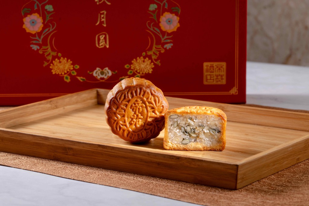 ▲麦芽糖高纤果仁月饼,精挑优质杂锦果仁及麦芽糖,味道天然无添加,高纤健康又饱肚。($348 帝苑酒店)