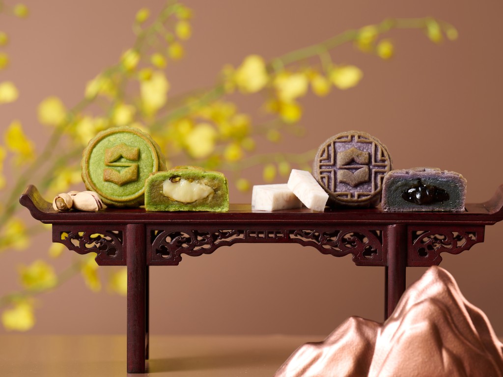 ▲芋头开心果麻糬月饼,香软粉糯的麻糬分别配搭芳香的芋头及酥脆的开心果,烟韧富嚼劲,层次鲜明。($408 港岛香格里拉酒店)