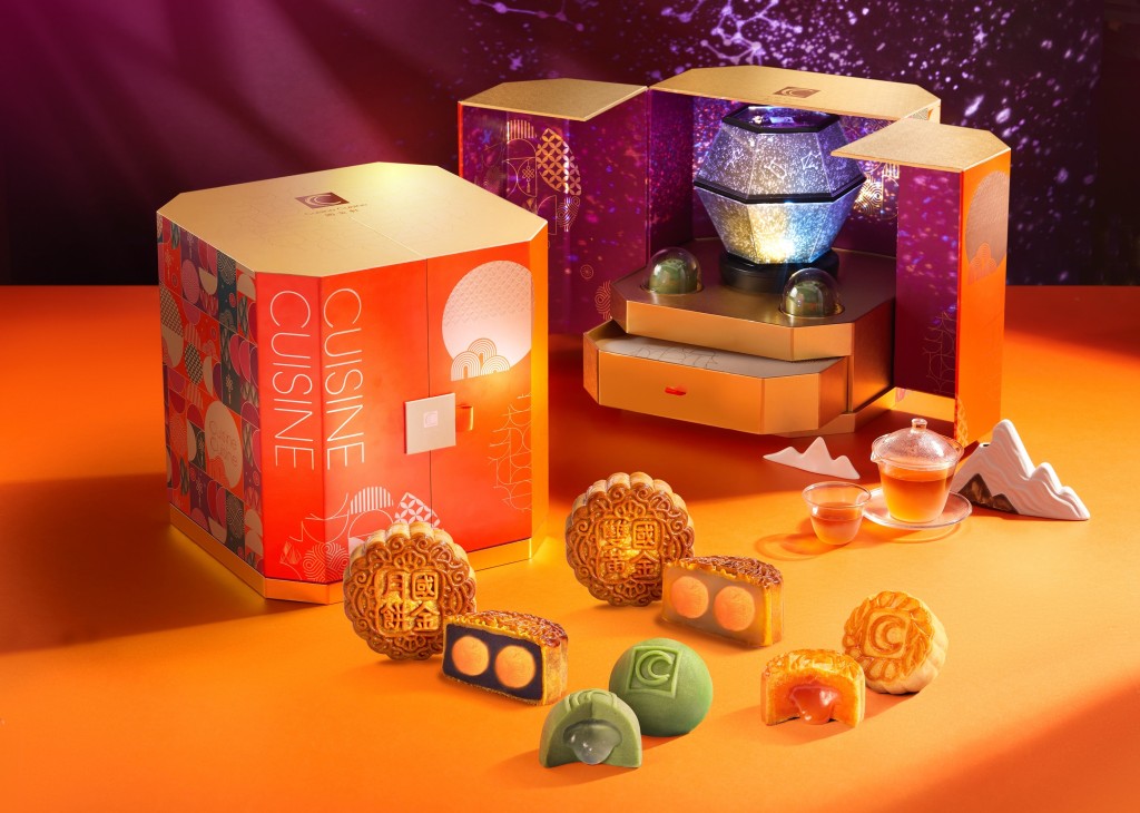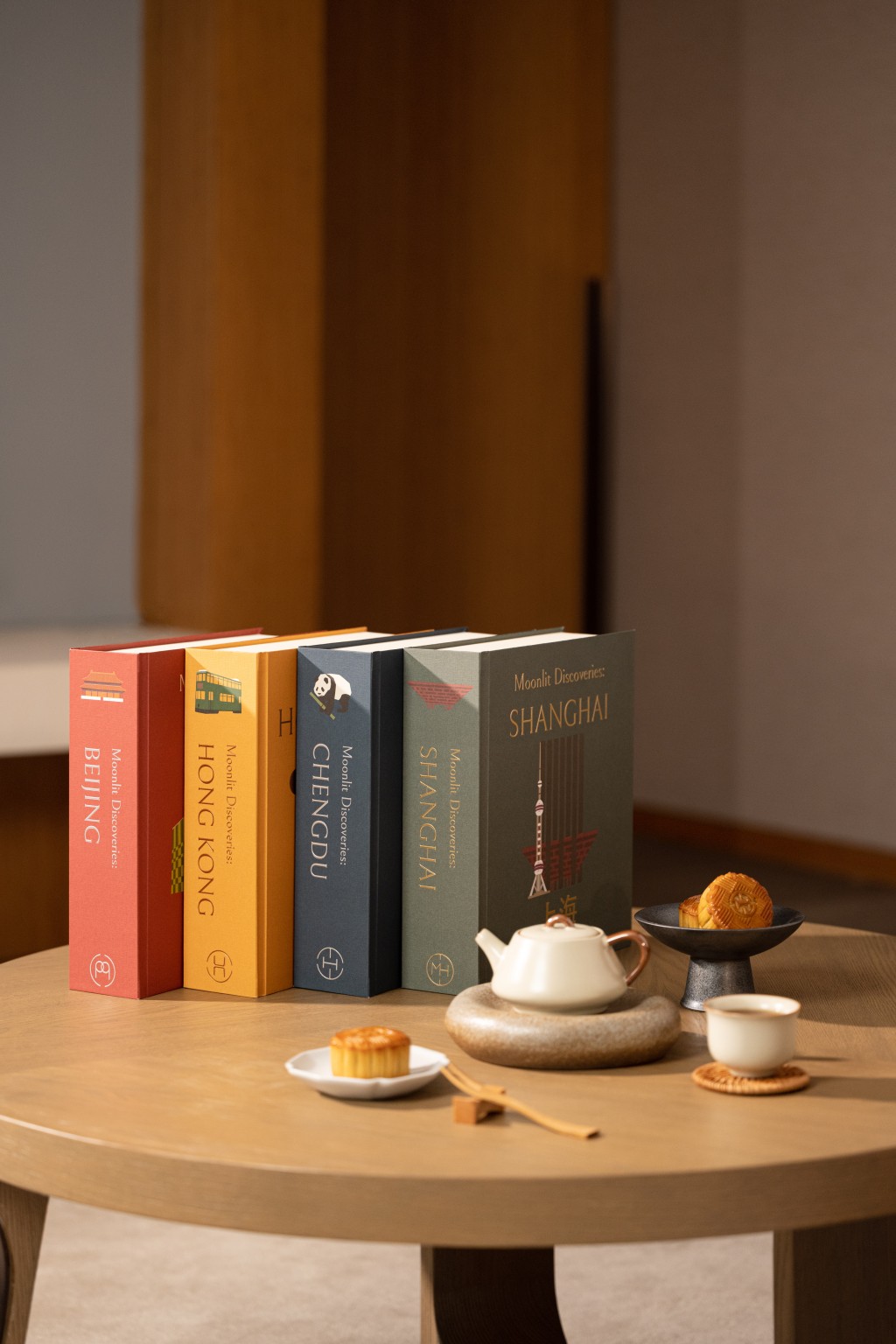 ▲月下旅人月饼礼盒,4款礼盒以香港、北京、上海和成都为主题,内有帕尔玛火腿、粒粒板栗、五黑坚果和藤椒火腿口味。($528 盒 居舍系列)
