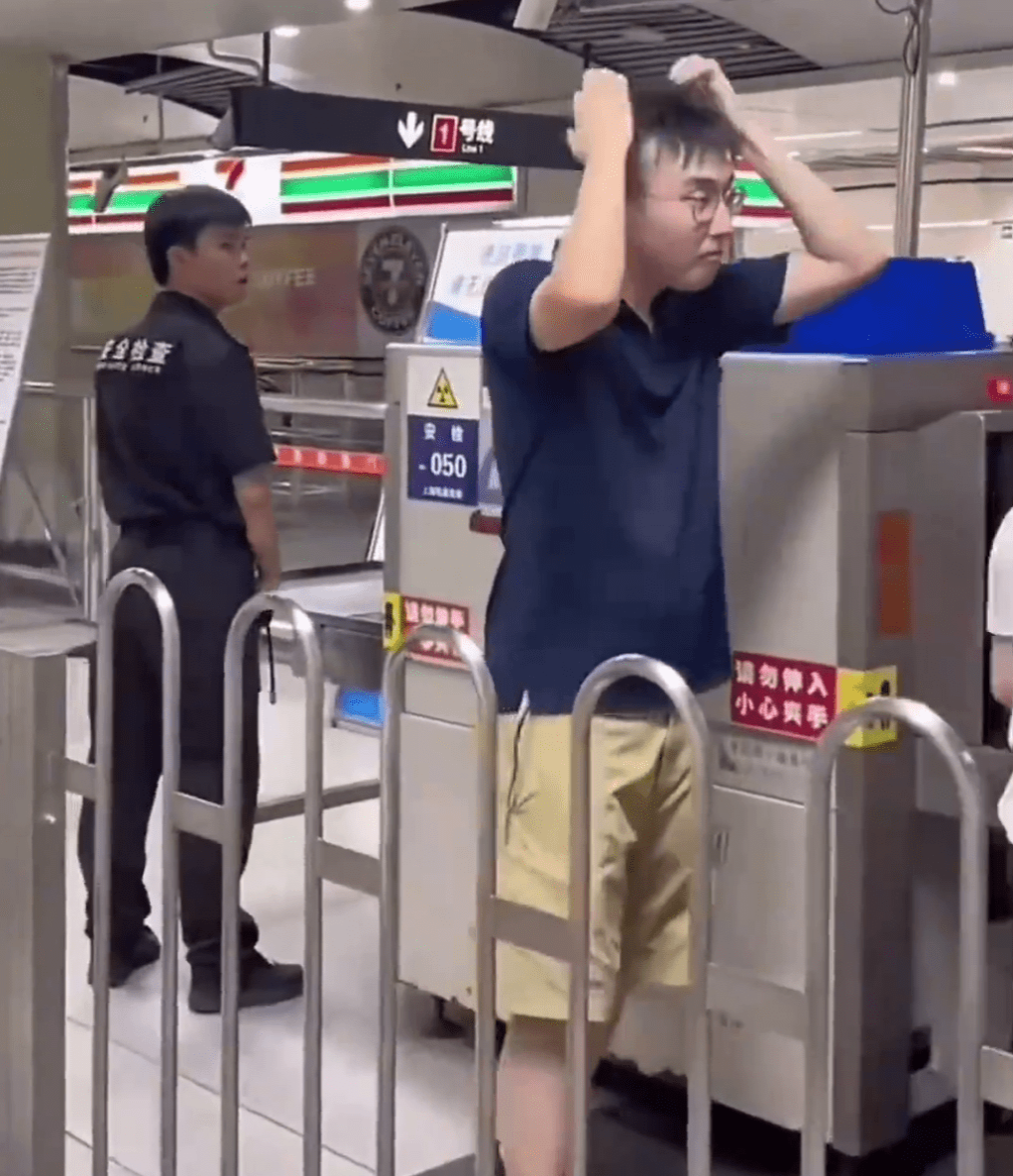 在内地乘搭地铁是须要过安检站的,身上的行李、手袋都要放置X光机让安检人员检查,而经过安检人员旁边,如果金属感测门响警报,更必须把口袋的物品都掏出检查,确定安全才能过关,没想到近日在上海地铁发生搞笑一幕。