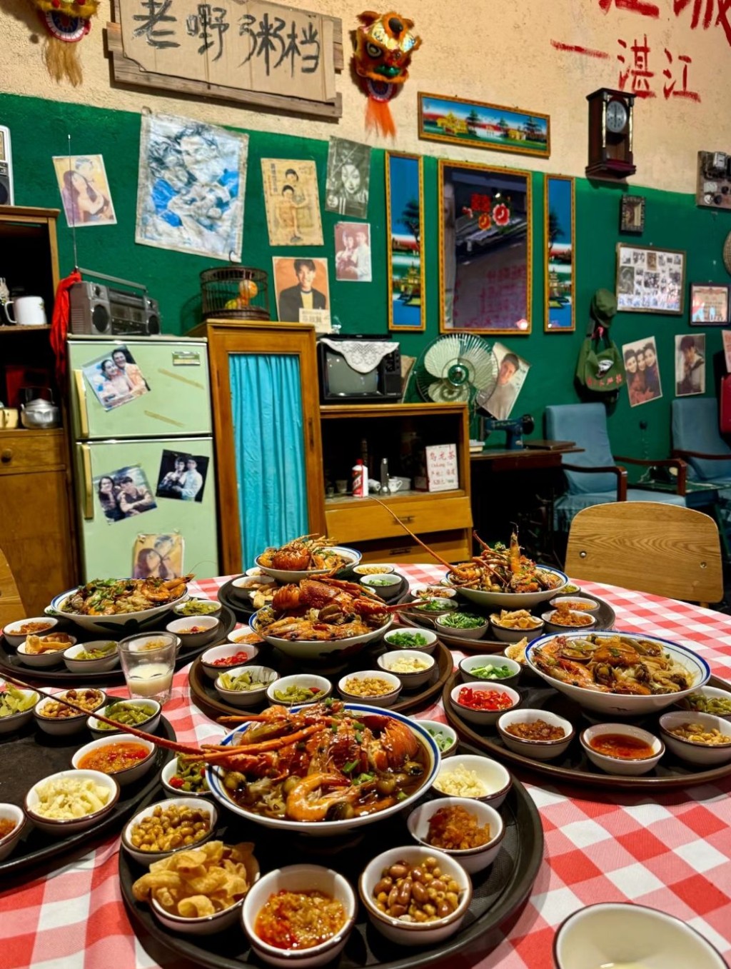 老嘢粥档三帆店是一间湛江文化主题餐厅,旧雪柜、电视机、衣车、老照片,很有80年代的怀旧气氛,有种旧广东家庭用餐的感觉。必吃¥9.9水井头海鲜捞粉,一大盘,有扇贝、鲜虾、花蛤、墨鱼饼、河粉。¥39.9龙虾海鲜捞粉,半只龙虾比手掌还大,肉质鲜美。自助调味料有十多款选择。还有泥丁粥、生灼粉肠、芝士焗龙虾,豆浆免费供应。