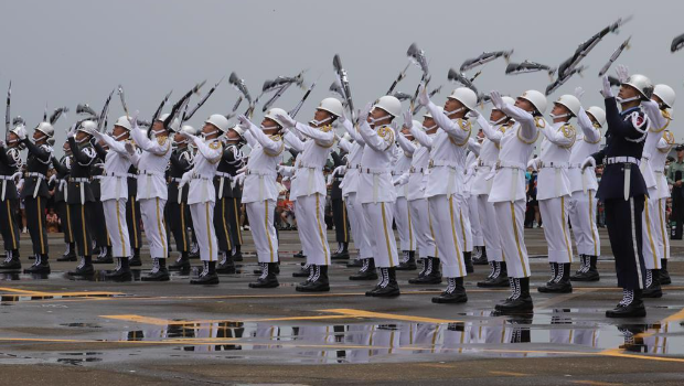 台空军嘉义基地营区开放10日活动中,三军乐仪队公开演奏日本自卫队知名进行曲“军舰”,引起议论。台湾防务部门回应称,乐队运用英、美及台等4首著名进行曲,并非单独使用日本作品。前“立委”蔡正元表示,庆祝空军节,演奏日本帝国海军军舰行进行曲,会不会太荒唐了一点。