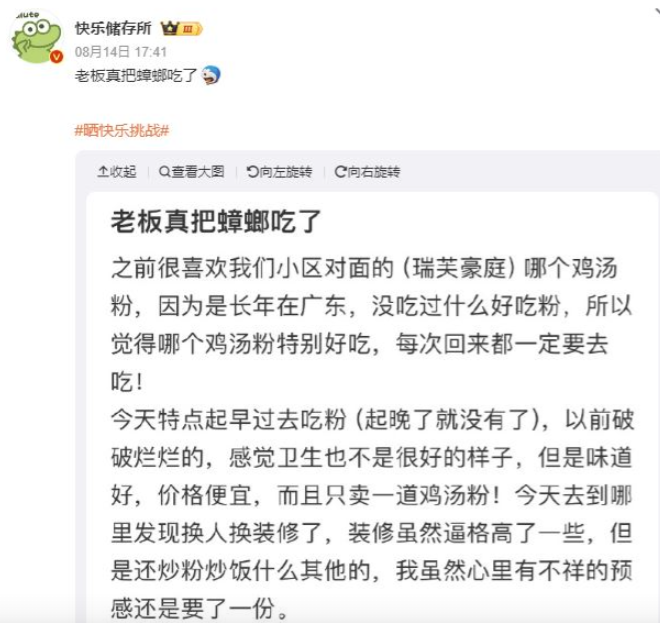 ▲网友发文投诉在粉店吃到蟑螂,老板竟当场将蟑螂吞了。