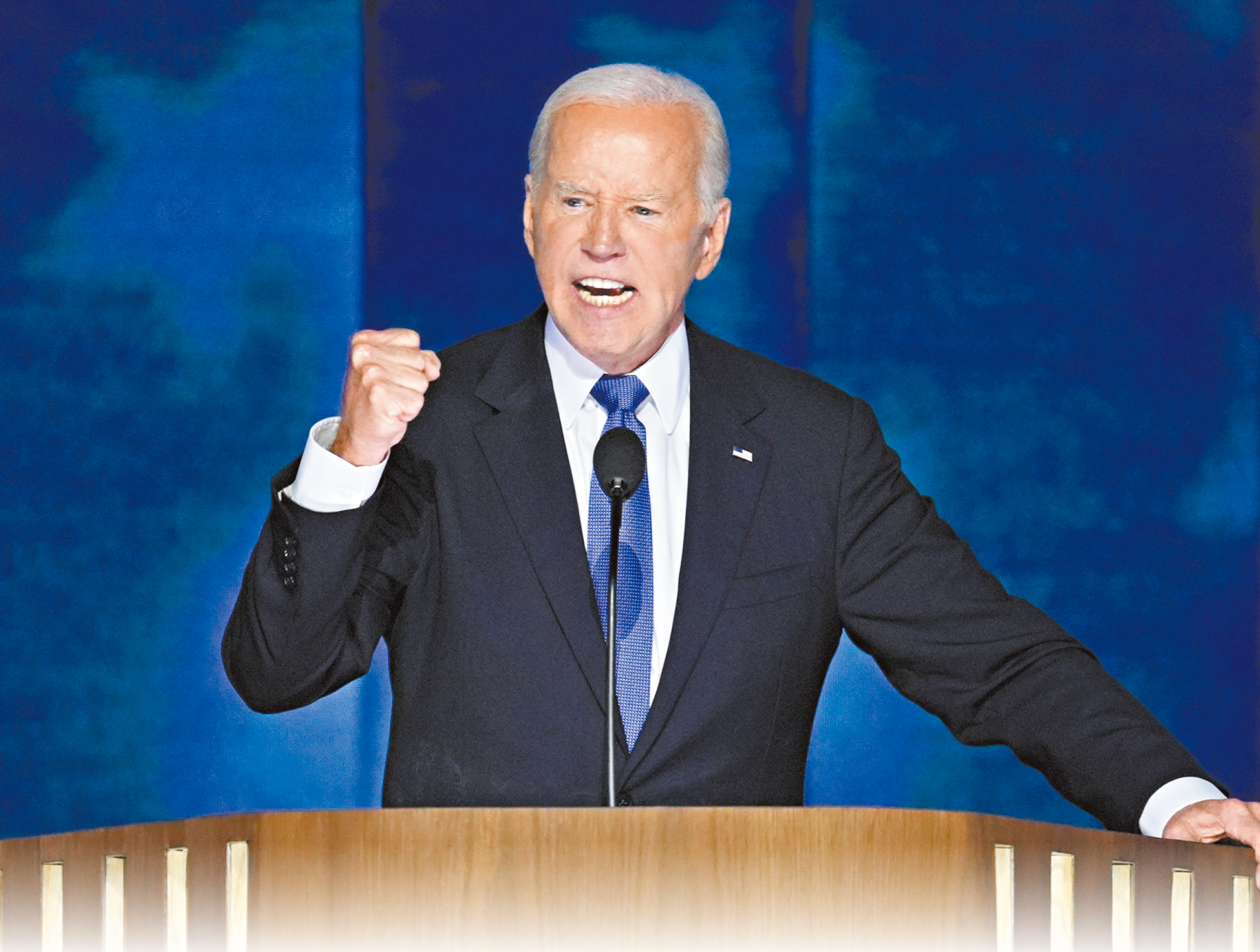 ▲总统拜登在民主党全代会上激情演说。 美联社
