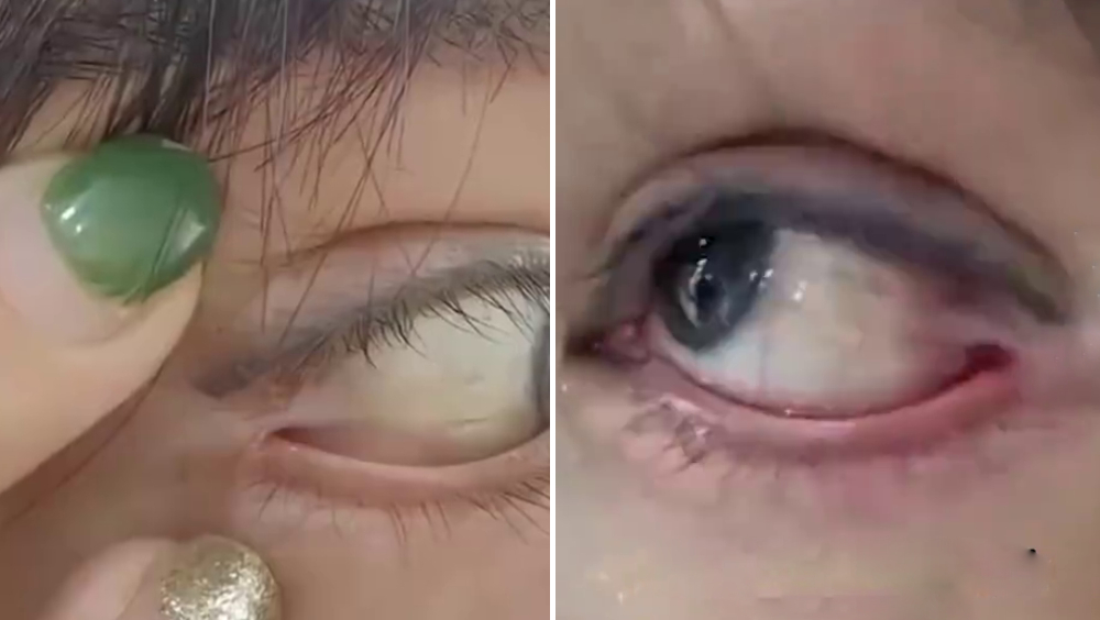 ▲女子花3万割双眼皮,怎料拆线后“眼球和眼皮被缝在一起”,再开刀亦增生,眼球无法正常转动。