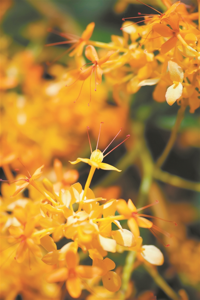 越南抱茎茶则是“远道而来”的宝贝。9月初,越南抱茎茶就露出手指头般大小的花蕾,次年入春后,红艳的花瓣中逐渐绽放出金黄色的花蕊。吴兴说,越南抱茎茶在原产地已灭绝,华南植物园成了“护宝之地”,凸显了植物迁地保护的重要性。